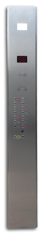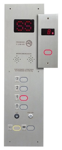 BT002 Botoeira de cabine com botão MX oblongo AL, PO, T, 1, 2, Braille, interfone, interruptor (luz), Yalle (liga/desl) e janela para IPD 50mm + botoeira de pavimento