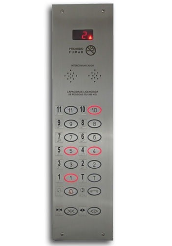 • 23 Botoeira de cabina com botão mx oval gravado, visor para IPD, portinhola para interfone e luz de emergência
