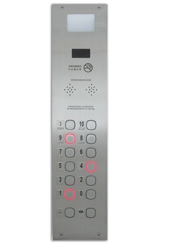20 Botoeira de cabina com botão mx poligonal liso,visor para IPD, prep para interfone e luz de emergência